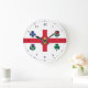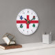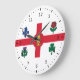 Relógio com a bandeira de Montreal, a cidade mais populosa da província de Quebec, Canadá. Uma bandeira branca com uma cruz vermelha, um pinho branco, uma Fleur-de-lys azul, uma rosa vermelha de Lancaster, uma shamrock, e um caroço