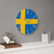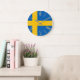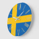 Este elegante relógio de parede personalizado apresenta um tema de amor sueco com a bandeira da Suecia colocada atrás. As horas são impressas em folha de ouro falso em numeração romana.