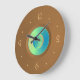 Um bonito relógio de parede bronzeado com um centro azul aqua. Este simples relógio da cozinha tem números para combinar. Um presente especial perfeito. Nota: este não é um produto led.