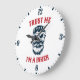 Um relógio de parede de garagem engraçada e personalizável com esmalte de barba e palavras "Confie em mim, eu sou um motociclista".