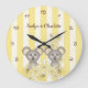 O design do produto apresenta koalas gêmeos bebês cercados por flores. O adorável desenho animado de animal com listras amarelas faz um relógio de parede redondo fofo e único com texto personalizado para berçário, quarto de crianças e mais!