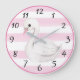 Um relógio de berçário rosa para uma menina tão bonita para completar o seu tema de berçário. Eu adoro a listra rosa e branca pastel. O cisne é simples, mas elegante. Doce. Outros produtos disponíveis neste tema.