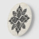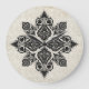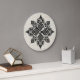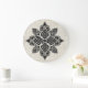 A ornamentação barroca europeia enfeita este relógio de parede. O fundo é uma cinza tradicional e um damasco branco.