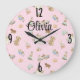 Relógio Grande Berçário de Menina Brinquedos Antigos no Rosa 10,7