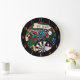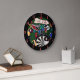 Wall clock com dardos, bilhares e imagens de jogos de pôquer.