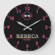 Relógio Grande Black and Rose Personalized Pink Accents Custom