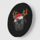 Relógio Grande Black Pug Santa Christmas Reindeer Christmas Light