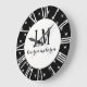 This elegant wall clock features a black and white bow design paired with a personalized script monogram for a refined, timeless look. Designed with clean typography and a balanced neutral palette, it complements modern offices, bedrooms, and thoughtfully styled home spaces. The minimalist composition offers quiet sophistication, making it ideal for professional environments, personalized décor, or elevated gifting. A subtle statement piece that blends function with understated luxury.