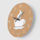 O muro da cozinha fica repleto de imagens de uma xícara fresca de café na face do relógio, neste design de relógio do decor da parede da casa para a sua cozinha, sala da família ou qualquer quarto na sua casa que você queira adicionar alguma comida e beber decoração relacionada. Os decoradores vão adorar isso como um acessório decorativo para seus clientes e o relógio funciona bem para uma variedade de temas.