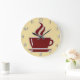 A parede da cozinha é feita de relógios castanhos e cremes, com a imagem de um café fresco na face do relógio nesta design de relógio da parede da casa para a sua cozinha, banheiro ou qualquer quarto na sua casa que você queira adicionar alguma comida e beber decoração relacionada.