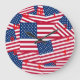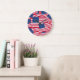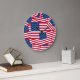Um monte de bandeiras americanas, com números vermelhos, torna esse relógio brilhante na parede divertido e patriótico! Este relógio também daria um dom exclusivo para o aquecimento doméstico ou o aquecimento do barco (ou o aquecimento do barco doméstico). Disponível em dois tamanhos de relógio redondo, ou um relógio quadrado. Copyright Scarebaby Design.