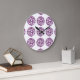 Relógio de Parede de Bolinhas de Zebra Bonita e Trendy. Esta design apresenta círculos de padrão de impressão de zebra divertida em roxo e branco. O texto pode ser adicionado a esta design para lhe dar um toque pessoal.