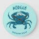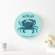 Cute blue crab personalized round kitchen clock. Customize with name or two lines.