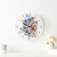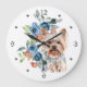 Relógio Grande Blue Floral Buquê Yorkshire Terrier Dog
