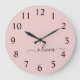 Relógio Grande Blush Dusty Pink Modern Script Girly Monograma Nom
