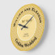 Celebre 50 anos com este relógio de aniversário de Bodas de Ouro. O relógio elegante pode ser personalizado com os nomes do casal, data do casamento e data do aniversário. A parte externa do relógio é decorada com um padrão de favos de mel. Um presente encantador para amigos ou familiares na ocasião especial das Bodas de Ouro.