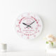 Celebre um aniversário de casamento marcante com este relógio de parede lindo e elegante com um design apresentando uma grinalda com corações vermelhos e rosados.