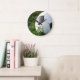 Bola de Futebol Preta e Branca em Grama Verde. Comprando um treinador de futebol, fã, crianças, mãe de futebol ou pai, este relógio de parede pode ser personalizado com nome, equipe, imagem, cor, texto ou foto. As cores de fontes disponíveis incluem vermelho, preto, azul, verde, branco, cinza, amarelo, rosa, roxo, castanho e laranja.