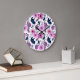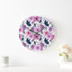 Relógio Grande Borboleta aquosa e flores rosa
