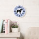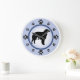 Proprietários de Borzoi e amantes de cachorros vão desfrutar desta divertida design com uma silhueta Borzoi e estampas de pata que representam os números na face do relógio, com um fundo de anel azul e azul mais escuro.