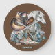 Garota, design de amante de cavalo com botas de cowboy, chapéu de cowboy, um belo cavalo, flores de turquesa e nome personalizado ou qualquer texto. Ocidental, design country.