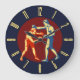 Este relógio tem uma ilustração retrô de dois homens boxeando.