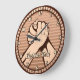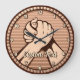 Medalha redonda de bronze com duas mãos em luta de braço.