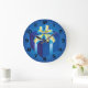 Adicione um salto de celebração a qualquer sala com este relógio decorativo de parede com uma caixa de presente azul brilhante e uma fita amarela e aqua alegre. Perfeito para quartos de crianças, espaços de festas ou como decoração divertida de feriados, este relógio único combina funcionalidade com estilo festivo. Disponível em vários tamanhos e opções de quadro e totalmente personalizável para se adequar ao seu espaço.