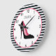 Relógio Grande Calçado Estiletto de Alto Céu Rosa e Preto