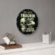 Este relógio de parede apresenta um design ousado e ousado para um motorista de caminhão sem disparate. Contra fundo preto, exibe um crânio ameaçador com a língua a sair, ao lado de um caminhão. O texto "WALK AFASTE ESTE CAMINHÃO TEM PROBLEMAS DE RAIVA E UM DISSIPADOR GRAVE PARA PESSOAS ESTÚPIDOS" é exibido de forma destacada em letras brancas angustiadas, fazer uma declaração forte e humorística sobre a personalidade do condutor.
