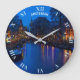 Relógio Grande Canal romântico de Amsterdão na noite com barcos