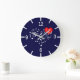 Grande imagem da silhueta de notas e clefs musicais em forma de coração, uma pequena imagem de um coração vermelho atrás das notas pretas. Um relógio romântico de parede azul escuro. Fique à vontade para usar o botão Personalizar para alterar a cor do plano de fundo e ajustar o design de acordo com as suas necessidades.