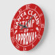 Esta engraçada design de Natal é feita em vermelho e branco e feita para parecer que foi estampada por Papais noeis. Diz, "Carimbo de Aprovação do Papai Noel" e mostra silhuetas de névoa, rena e flocos de neve. Esta é uma design bonitinha e humorística para o feriado. Os números de relógio são brancos romanos.