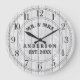 Relógio grande e personalizado de casa de fazenda em madeira de celeiro branco rústico senhor & senhora. Relógio grande e bonito de madeira de celeiro vintage branco rústico personalizado com o nome da família do casal e ano de fundação para decoração de parede. O visual perfeito de prancha de madeira country para qualquer casa ou cozinha.