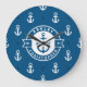 Relógio Grande Casamento azul náutico de padrões de âncora Grande