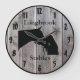 Personalize este relógio de madeira de casca personalizada com seu nome de fazenda, rancho ou estável para adicionar um toque pessoal à decoração. Barnwood olha a cara do relógio com cavalo e dono mostrando silhueta de afeto no centro. Escolha um dos dois tamanhos e duas cores da mão do relógio, o que for ao seu gosto.