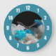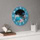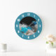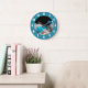 Este relógio da parede azul mostra uma foto de uma adorável cavansite azul em uma matriz de estilite branca, com fundo preto. Se você não gosta de minerais, você pode até substituir a foto por outra coisa inteiramente!