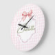 Relógio Grande Charlotte Laço Rosa Personalizado e Estampa Xadrez