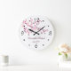 Relógio Grande Cherry Blossoms Nomes de Newlyweds White Pink