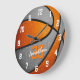 Esta equipe colorido o relógio da parede de basquete é adequado para um garoto ou uma garota e apresenta uma bola de basquete com painéis coloridos e cinzas coloridos alternados e números da face do relógio - personalize com o nome do jogador em uma fonte do estilo "autógrafo" sobre o número de camisola do atleta - por katz_d_zynes