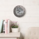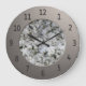 Relógio Grande Círculo de Dígitos Metálicos Branco Granito Rock B