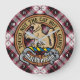Crachá da crista Clan MacPherson cercado por uma correia e fivela sobre a caça ao fundo tartano. Custom Text.