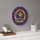 Crachá da crista Clan Wardlaw rodeado por uma correia e fivela sobre fundo tartano. Custom Text.