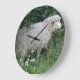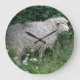 Este relógio incrível mostra uma fotografia de uma ovelha fofa. As ovelhas estão cercadas por flores silvestres e erva comprida e comem algumas folhas de forma vertiginosa. Tem um casaco de lã branco grosso e um nariz preto fofo.