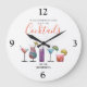 Um relógio de coquetel na moda divertido, com o texto " ISSO COMEÇA A PARECER MUITO COMO COCKTAILS, AT THE JOHNSONS" com a imagem de cinco coquetéis coloridos, e muito fácil de editar.