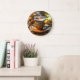 Wall Clock, Moldura de madeira branca redonda de 25,4 cm