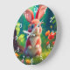 Relógio Grande Coelhinho Rosa Bonito na Grama Verde-47567