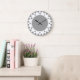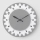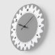 Um relógio com um design resistente e original. 24 engrenagens ao redor da borda com uma escala de hora e minuto com na moda numéricos claros em volta da borda interna. Disponível em várias cores diferentes. No entanto, a cor de fundo também pode ser personalizada.