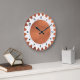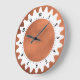 Um relógio com um design resistente e original. 24 engrenagens ao redor da borda com uma escala de hora e minuto com na moda numéricos claros em volta da borda interna. Disponível em várias cores diferentes. No entanto, a cor de fundo também pode ser personalizada.