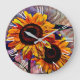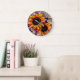 Relógio Grande Coleção Elegante de Girassóis Brilhantes Dourados